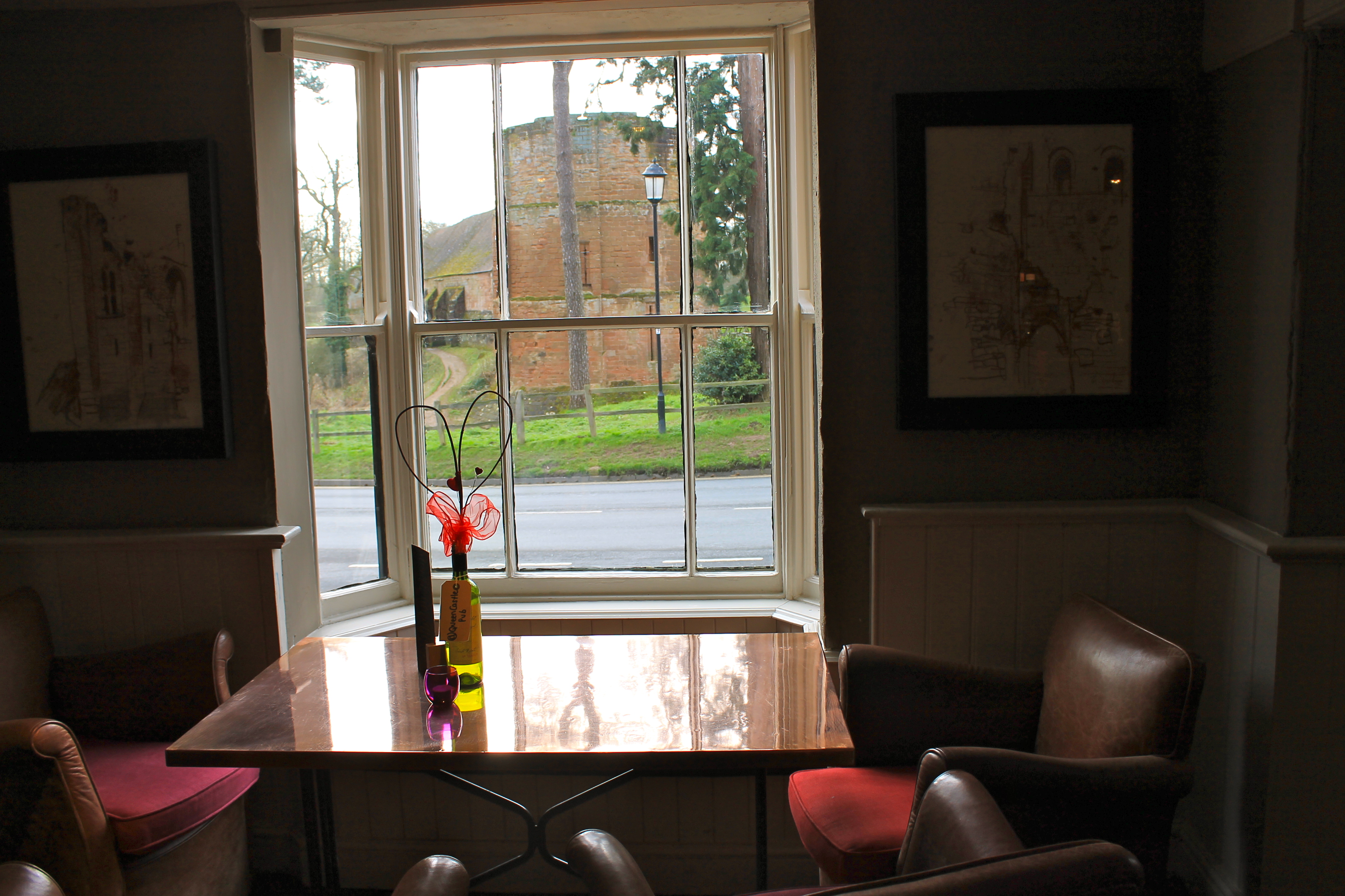 Warming up at The Queen and Castle, a pub across the street from the castle